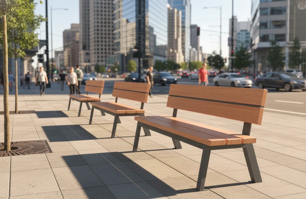 Ένα παγκάκι που «στέκεται» σωστά σε πεζοδρόμια, πλατείες και σύγχρονους δημόσιους χώρους, χωρίς να βαραίνει το τοπίο.